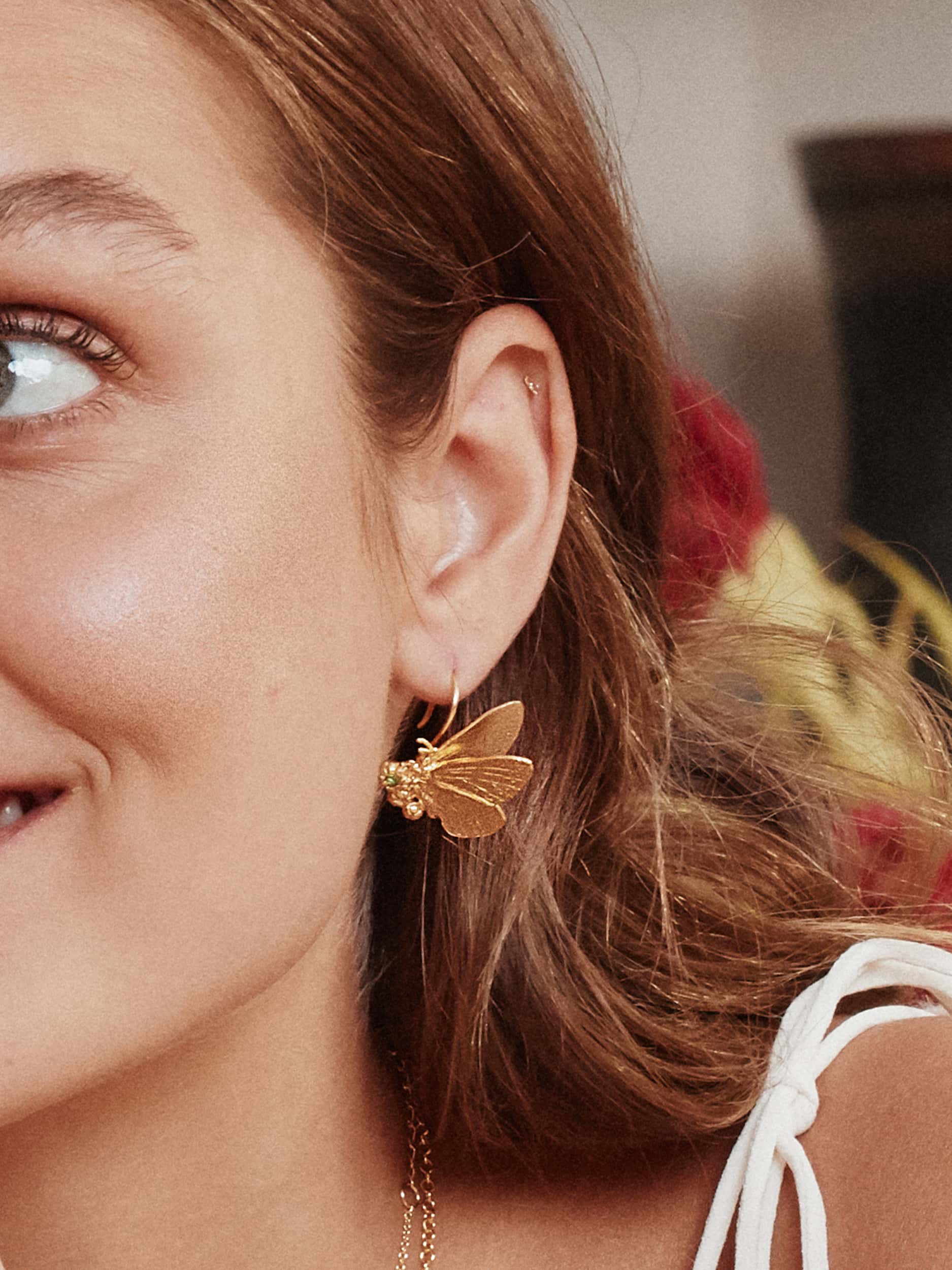The Duke of Burgundy Butterfly is a species found only in England in Springtime. Our Butterfly Earrings can be found clutching two sparkling green tsavorites, hand set within Alex's signature bud setting! Alex Monroe Jewellery is inspired by nature and handcrafted in our London Workshop.