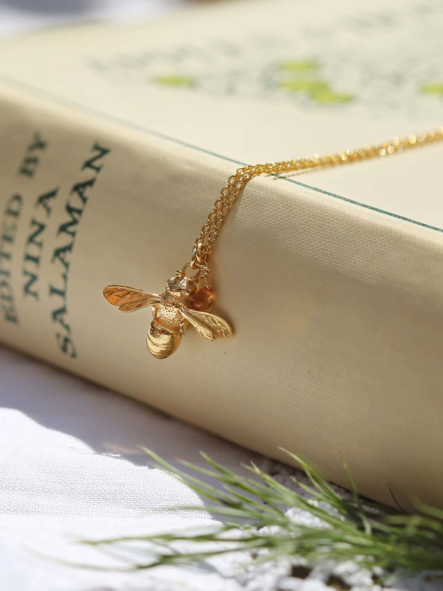 https://www.alexmonroe.com/honey-bee-and-citrine-necklace11588Honey Bee and Citrine Necklacehttps://www.alexmonroe.com/media/catalog/product/d/b/dbn5-gp__base.jpg135135GBPInStock/Collections/Collections/The Beehive/Jewellery/Necklaces/Pendant Necklaces/Jewellery - Mainline/Necklaces/Jewellery - Mainline/Collections/Pollinators/Collections/Say it with Love/Collections/Hello Spring/Wedding Jewellery/Bridal Jewellery/Wedding Jewellery/Wedding Gifts/Collections/Best of British/Jewellery/Topaz & Citrine Jewellery/Collections/Spring Favourites/Collections/Buzzing Bees & Summer Daisies/Collections/Best Dressed Guest/Jewellery/Collections/Animal Favourites/Shop/Jewellery/Necklaces/Bestsellers/Gifts/Gifts Under £150/Jewellery/Necklaces/Necklaces Under £150/test3872822932902923673894013283274214444554654684472436833350751047712348290292331516Honouring the humble Honey Bee, our Necklace features a sweet citrine briolette, representing the hard work that goes into every drop of honey they produce! Honouring the humble Honey Bee, our Necklace features a sweet citrine briolette, representing the hard work that goes into every drop of honey these amazing creatures produce! Alex Monroe Jewellery is inspired by nature and handcrafted in our London Workshop.Alex Monroe175https://www.alexmonroe.com/media/catalog/product/d/b/dbn5-gp__m.jpghttps://www.alexmonroe.com/media/catalog/product/d/b/dbn5-18y__l.jpghttps://www.alexmonroe.com/media/catalog/product/d/b/dbn5-gp__1.jpghttps://www.alexmonroe.com/media/catalog/product/d/b/dbn5-gp__2.jpgDBN5sku:DBN5chain_length:40.5 cm - 45.5 cm (16" - 18")anniversary:25th - Silverstones_multi:Citrinebrand:Alex Monroetheme:Beescollections_filter:The Beehivechain_type:12T Standardchain_length:40.5 cm - 45.5 cm (16" - 18")type_of_product:Necklacenecklace_type:Pendantstyle:Pendant Necklacegemstone:Citrinegemstone_colour:Orange, Yellowproduct_collection:Daisy Bellproduct_theme:Animals, Bees, Insectsimage:/d/b/dbn5-gp__base.jpgsmall_image:/d/b/dbn5-gp__base_plp.jpgthumbnail:/d/b/dbn5-gp__base_sq.jpglead_weeks:10lifestyle_image:/d/b/dbn5-gp__m.jpglimited_quantity:Noarchive_sale:Noone_of_a_kind:Nocurrent_archive_style:Nohas_carbon_footprint_value:Nois_new_product:Noexclude_list:Noproduct_details_chain:Trace chain total length 455mm with extension from 405mm to 455m (16"-18")product_details_dimensions:Pendant measures 20mm by 12mmproduct_details_gemstone:Citrine Faceted Briolettes measure 5mm by 4mmproduct_usp_4:100% Solid Recycled Silverproduct_usp_5:Fairmined Licensed Gold Plateproduct_usp_6:Handmade in Englandis_personalisation_option:Nopersonalisable_product:Nodiscount_excluded:No11590Honey Bee and Citrine Necklace180180https://www.alexmonroe.com/media/catalog/product/d/b/dbn5-gp__base.jpgDBN5-GPInStockGold plate11589Honey Bee and Citrine Necklace135135https://www.alexmonroe.com/media/catalog/product/d/b/dbn5-s__base.jpgDBN5-SInStockSilverDBN5/d/b/dbn5-gp__base.jpg/d/b/dbn5-gp__base_plp.jpg/d/b/dbn5-gp__base_sq.jpg40.5 cm - 45.5 cm (16" - 18")25th - SilverCitrineAlex Monroe10/d/b/dbn5-gp__m.jpgNecklaceBeesThe BeehiveNoNoNoNo12T StandardNoNoPendantNoPendant NecklaceCitrineOrange, YellowDaisy BellAnimals, Bees, InsectsTrace chain total length 455mm with extension from 405mm to 455m (16"-18")Pendant measures 20mm by 12mmCitrine Faceted Briolettes measure 5mm by 4mm100% Solid Recycled SilverFairmined Licensed Gold PlateHandmade in EnglandNoNoNo2024-09-04NoPlease select a static block.StandardJust like you, our beautiful jewellery does need to be looked after. We have compiled a list of hints and tips for you on how to care for your Alex Monroe jewellery, so it will look as lovely as the day you received it. Many customers continue to enjoy wearing their Alex Monroe jewellery after owning it for 25 years!