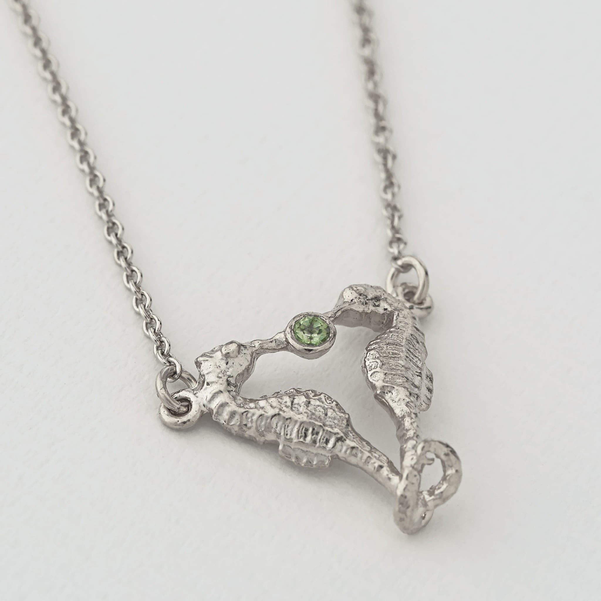 Deep within the reef two Seahorses are bonded for life in this touching necklace, accented with a sparkling green peridot! Born from increasing environmental concerns, our 'Oceans' collection sees Alex and our Design team celebrate the beauty and majesty that dwells within our planet’s waters.