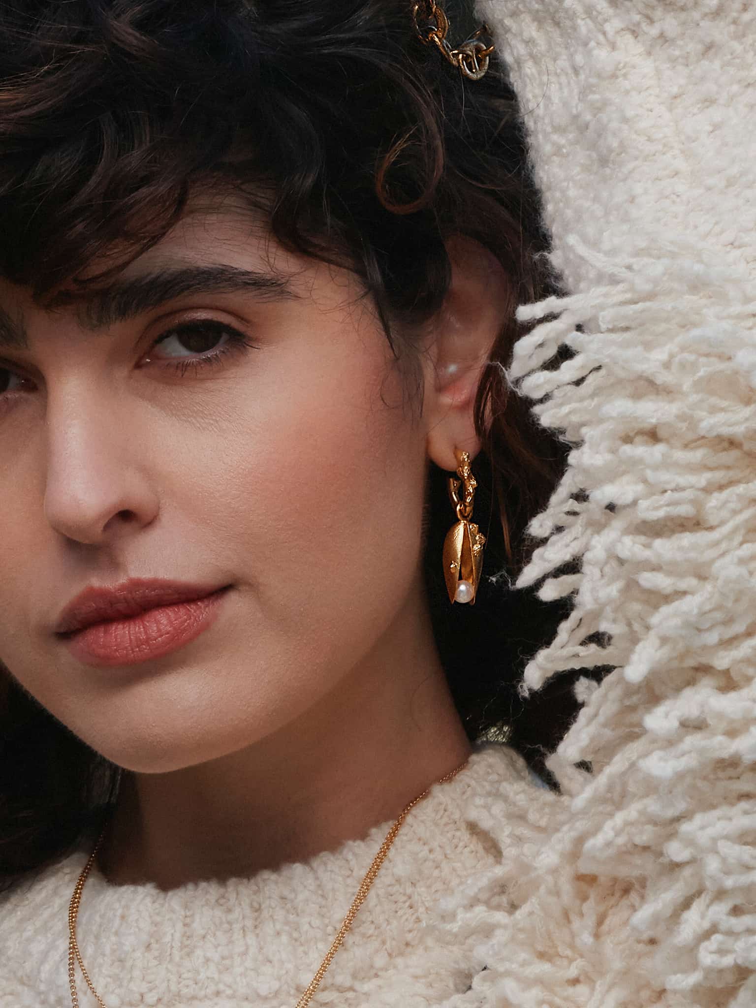 These bold and luxurious earrings feature a slightly open mussel shell, complete with details of barnacles and limpets, hanging from an individual ‘rusted’ chain link. A freshwater pearl held within each mussel shell creates a playful detail. Handmade in our London workshop.