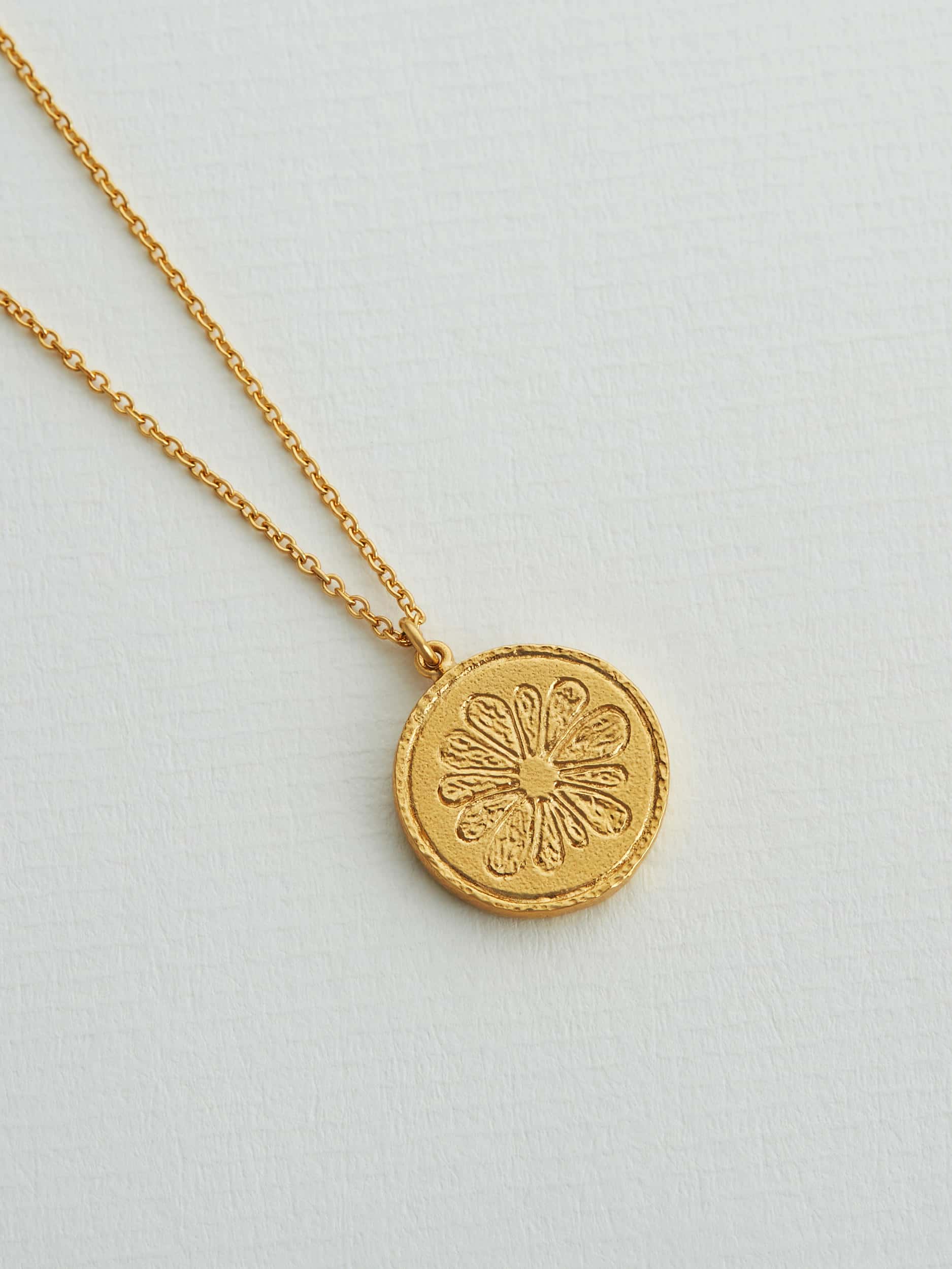 The structure of this grapefruit slice was carefully considered, creating textures of both segments and rind. The result is a medallion-like necklace, which comes on our signature 16-18’’ chain, working equally well as a stand alone piece - or layered with others. Handmade in Sterling Silver and plated with Fairmined Gold.
