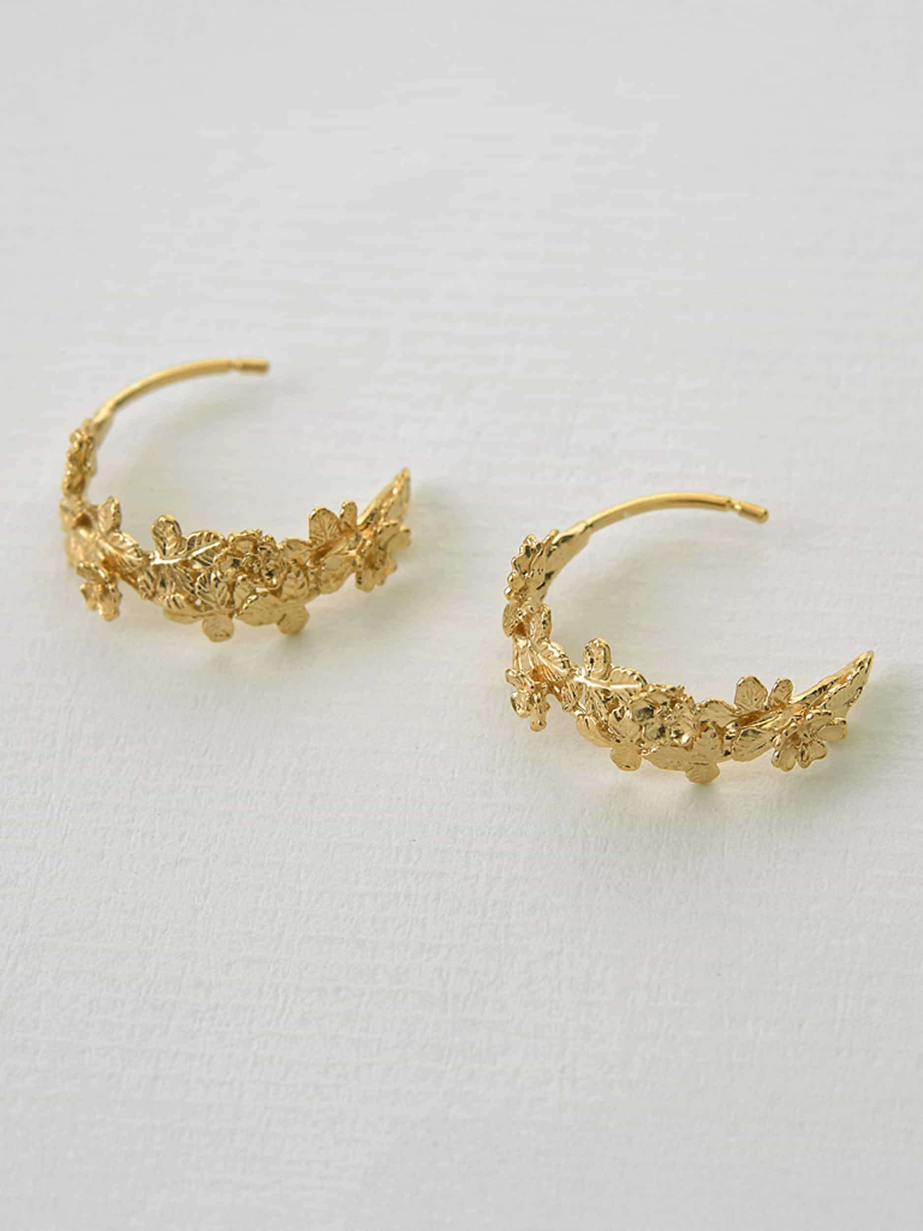 A trail of wild roses and leaves loop to form a pair of floral hoop earrings! Alex Monroe Jewellery is inspired by nature and handcrafted in our London Workshop.