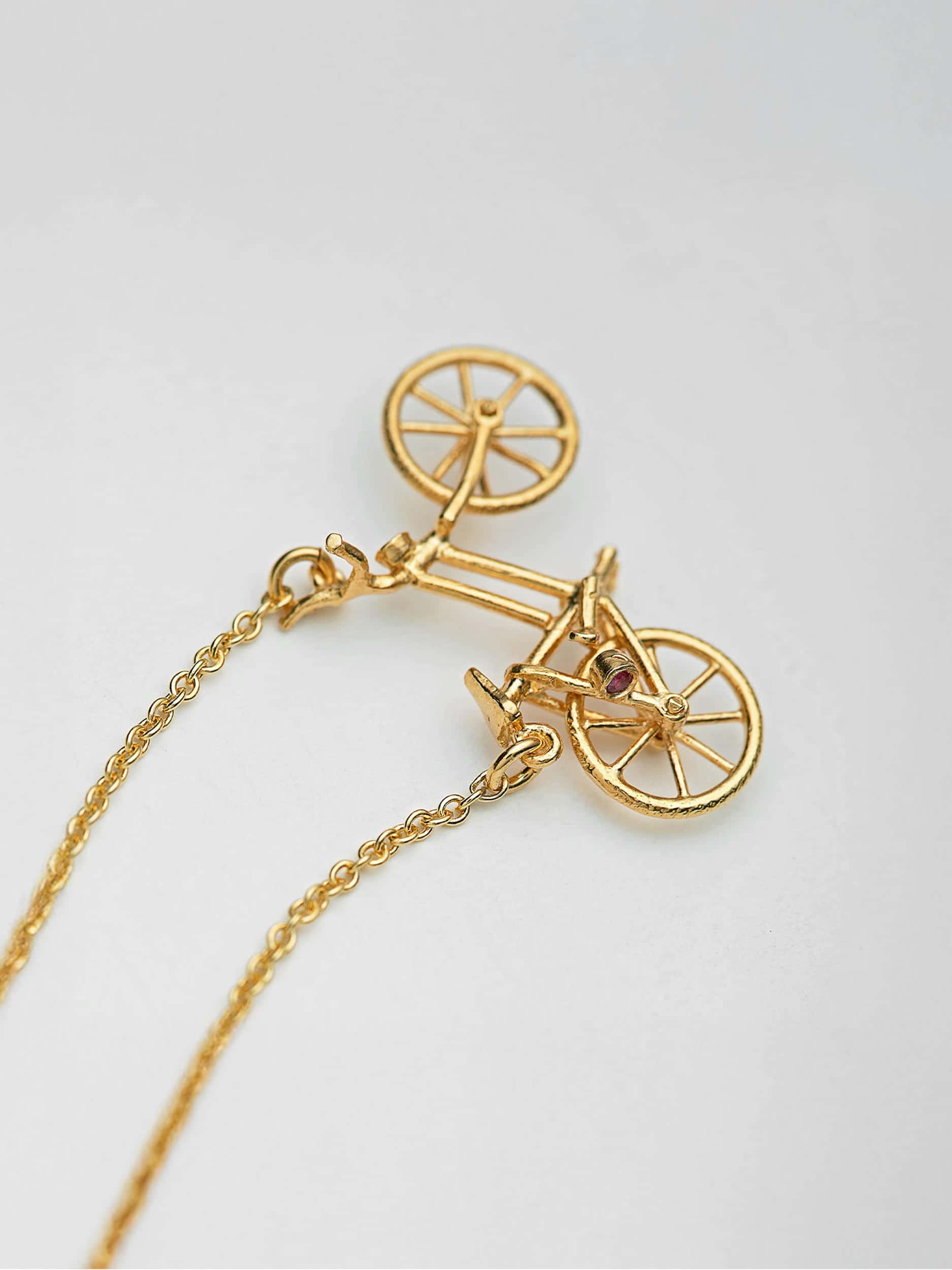 https://www.alexmonroe.com/vintage-bicycle-necklace-with-gemstone-lights11249Vintage Bicycle Necklace with Gemstone Lightshttps://www.alexmonroe.com/media/catalog/product/d/b/dbn10-gp__base.jpg255255GBPInStock/Collections/Jewellery/Necklaces/Pendant Necklaces/Jewellery - Mainline/Necklaces/Jewellery - Mainline/Collections/Nurtured Garden/Collections/Best of British/Jewellery/Shop/Jewellery/Necklaces/Jewellery/Diamond Jewellery/Jewellery/Diamond Jewellery/Everyday Diamonds/test32822932902923824214436841953147712482902923419A diamond and ruby form the head and tail lights on this vintage bicycle necklace with spinning wheels! A diamond and ruby form the head and tail lights on this vintage bicycle necklace with spinning wheels! Alex Monroe Jewellery is inspired by nature and handcrafted in our London Workshop.Alex Monroe00https://www.alexmonroe.com/media/catalog/product/d/b/dbn10-gp__m.jpghttps://www.alexmonroe.com/media/catalog/product/d/b/dbn10-gp__l.jpghttps://www.alexmonroe.com/media/catalog/product/d/b/dbn10-gp__1.jpgDBN10sku:DBN10chain_length:40.5 cm - 45.5 cm (16" - 18")anniversary:25th - Silverstones_multi:Diamondbrand:Alex Monroetheme:Travelchain_type:12T Standardchain_length:40.5 cm - 45.5 cm (16" - 18")type_of_product:Necklacenecklace_type:Pendantstyle:Inline Necklacegemstone:Diamond, Rubygemstone_colour:Red, Whiteproduct_collection:Daisy Bellproduct_theme:Travelimage:/d/b/dbn10-gp__base.jpgsmall_image:/d/b/dbn10-gp__base_plp.jpgthumbnail:/d/b/dbn10-gp__base_sq.jpglead_weeks:10lifestyle_image:/d/b/dbn10-gp__m.jpglimited_quantity:Noarchive_sale:Noone_of_a_kind:Nocurrent_archive_style:Nohas_carbon_footprint_value:Nois_new_product:Noexclude_list:Noproduct_details_chain:Trace chain total length 455mm with extension from 405mm to 455m (16"-18")product_details_dimensions:Pendant measures 24mm by 15mmproduct_details_gemstone:White Round Brilliant Diamond measures 1.2mm G/HSI2. Ruby measures 1.2mmproduct_usp_4:100% Solid Recycled Silverproduct_usp_5:Fairmined Licensed Gold Plateproduct_usp_6:Handmade in Englandis_personalisation_option:Nopersonalisable_product:Nodiscount_excluded:No11251Vintage Bicycle Necklace with Gemstone Lights255255https://www.alexmonroe.com/media/catalog/product/d/b/dbn10-gp__base.jpgDBN10-GPInStockGold plate11250Vintage Bicycle Necklace with Gemstone Lights210210https://www.alexmonroe.com/media/catalog/product/d/b/dbn10-s__base.jpgDBN10-SOutOfStockSilverDBN10/d/b/dbn10-gp__base.jpg/d/b/dbn10-gp__base_plp.jpg/d/b/dbn10-gp__base_sq.jpg40.5 cm - 45.5 cm (16" - 18")25th - SilverDiamondAlex Monroe10/d/b/dbn10-gp__m.jpgNecklaceTravelNoNoNoNo12T StandardNoNoPendantNoInline NecklaceDiamond, RubyRed, WhiteDaisy BellTravelTrace chain total length 455mm with extension from 405mm to 455m (16"-18")Pendant measures 24mm by 15mmWhite Round Brilliant Diamond measures 1.2mm G/HSI2. Ruby measures 1.2mm100% Solid Recycled SilverFairmined Licensed Gold PlateHandmade in EnglandNoNoNo2024-09-04NoPlease select a static block.StandardJust like you, our beautiful jewellery does need to be looked after. We have compiled a list of hints and tips for you on how to care for your Alex Monroe jewellery, so it will look as lovely as the day you received it. Many customers continue to enjoy wearing their Alex Monroe jewellery after owning it for 25 years!